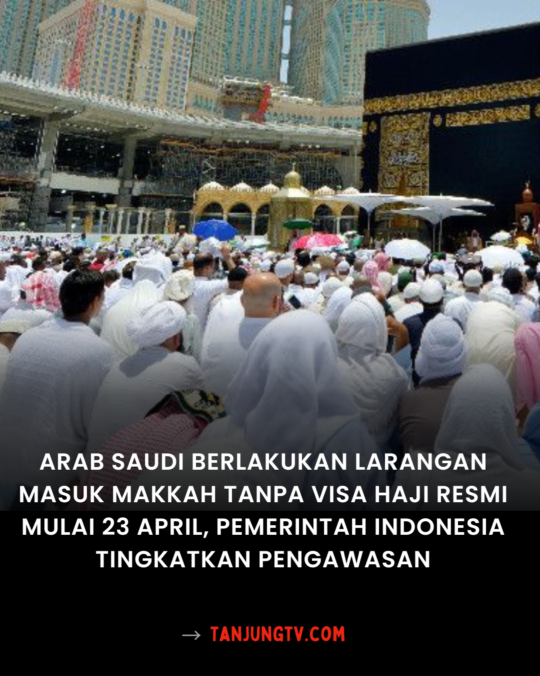 Tanjungtv.com – Pemerintah Arab Saudi resmi memberlakukan kebijakan baru yang melarang masuk ke Kota Makkah tanpa visa haji resmi mulai 23 April 2025. Langkah ini diambil sebagai upaya pengetatan terhadap praktik ibadah haji ilegal, terutama menjelang musim haji 2026. Kebijakan ini disambut positif oleh pemerintah Indonesia, yang telah meningkatkan koordinasi dengan otoritas Saudi untuk memastikan jamaah haji Indonesia berangkat melalui jalur resmi.