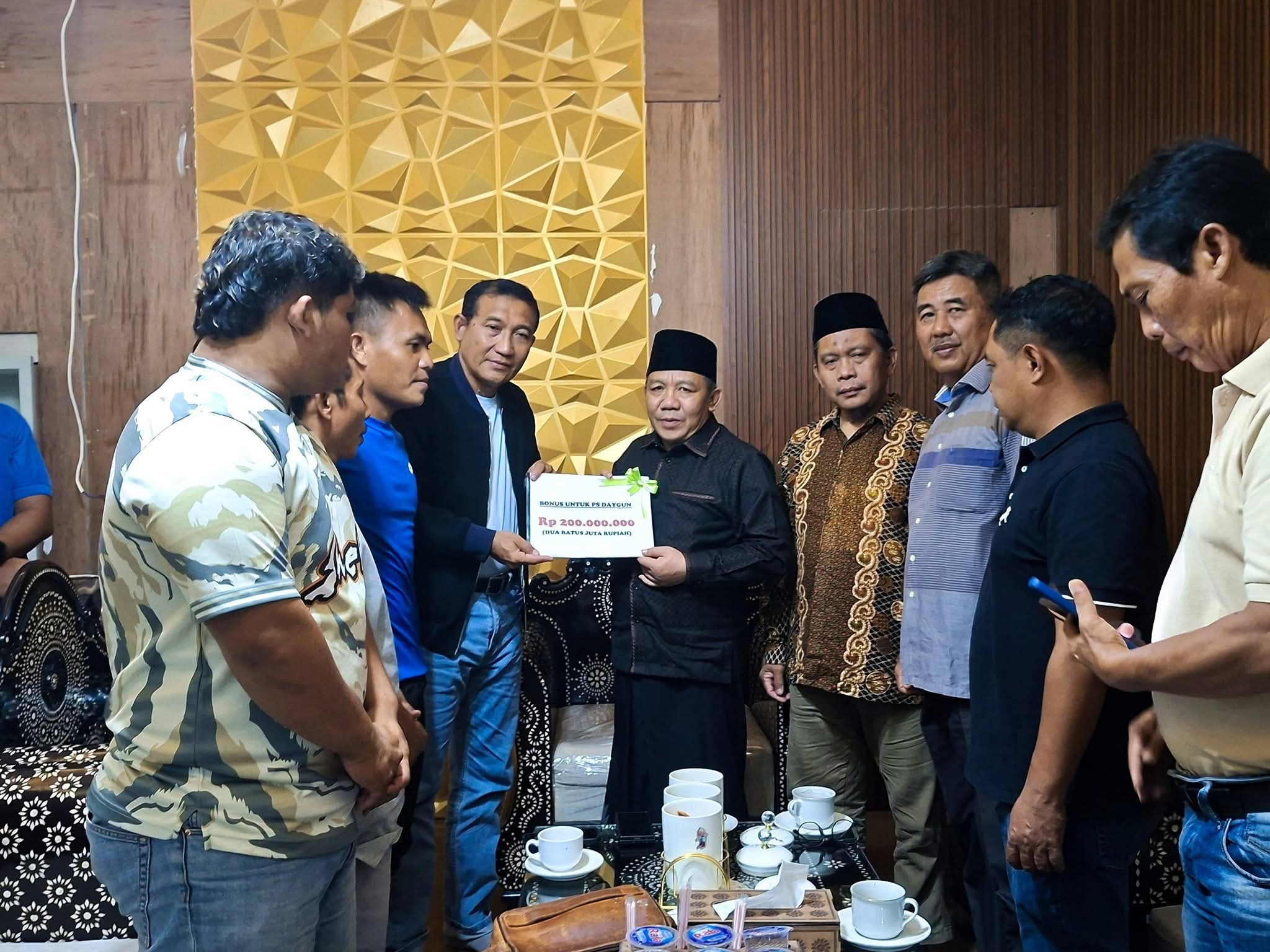 Sebagai bentuk apresiasi, Bupati KLU Najmul Akhyar menyerahkan bonus Rp200 juta kepada tim PS Daygun, Selasa malam (17/2), di Pendopo Bupati, Menggala, Kecamatan Pemenang. Penyerahan tersebut turut dihadiri para pemain, official tim, serta jajaran pengurus Askab PSSI KLU.