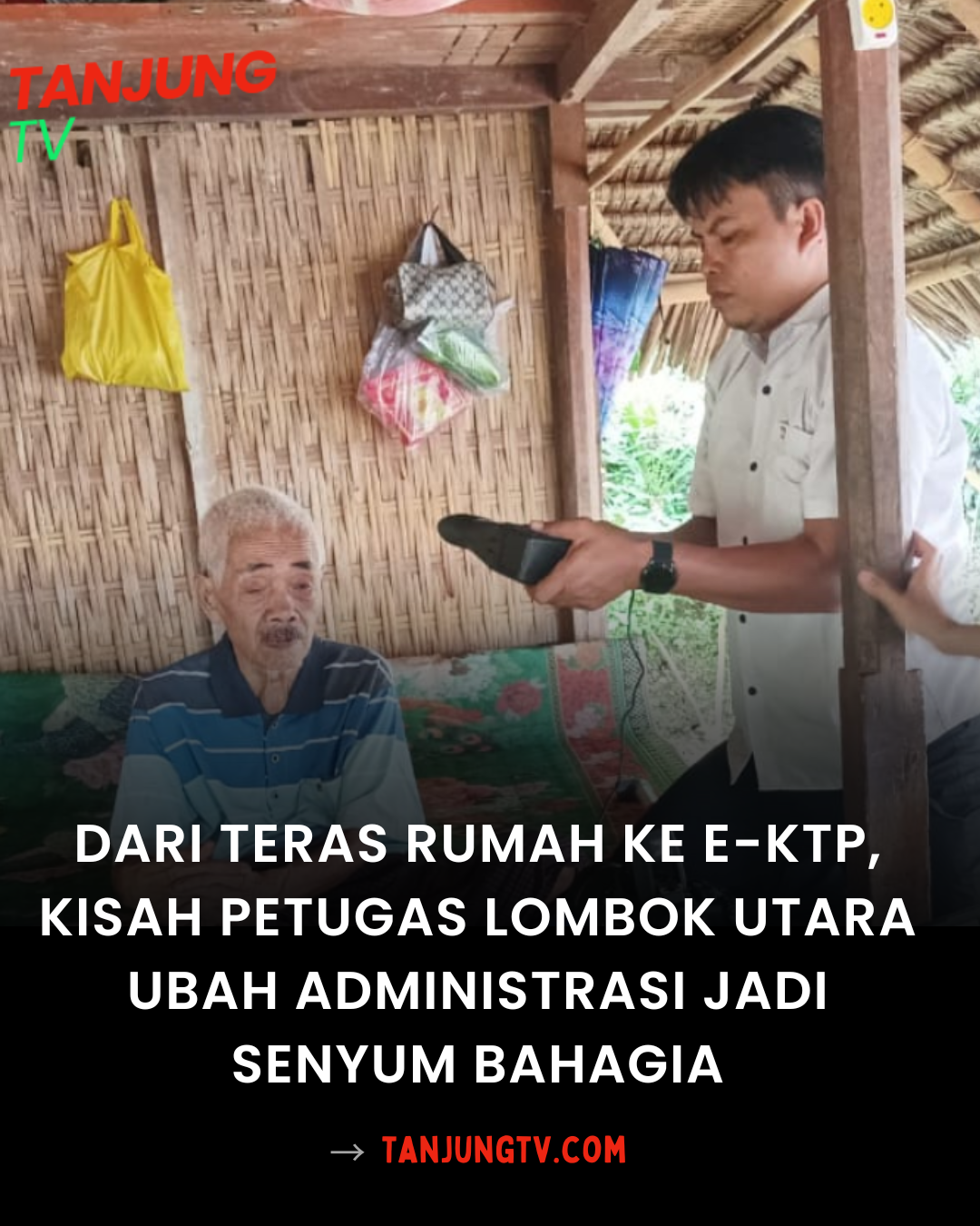 Tanjungtv.com – langkah kecil tim Dinas Kependudukan dan Pencatatan Sipil (Dukcapil) Lombok Utara menciptakan gelombang inspirasi. Dengan membawa peralatan lengkap—dari fingerprint portabel hingga kamera e-KTP—mereka mendatangi puluhan lansia, penyandang disabilitas, dan ODGJ (Orang Dengan Gangguan Jiwa) di Desa Rempek. Bukan sekadar urus dokumen, petugas mengubah meja dapur warga menjadi “kantor dinas dadakan”, sambil menyeruput teh dan mendengar cerita kehidupan mereka.