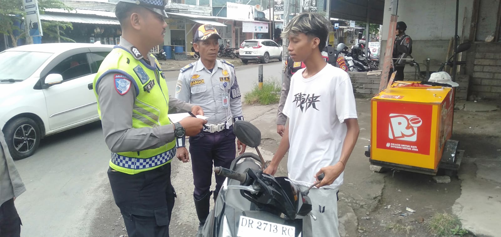 Petugas juga mengingatkan agar pengendara roda dua tidak berboncengan lebih dari dua orang, tidak menggunakan ponsel saat berkendara, serta selalu melengkapi dokumen kendaraan seperti SIM dan STNK.