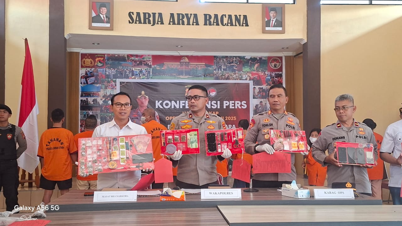 Tanjungtv.com – Operasi Antik Rinjani 2025 yang digelar Satuan Reserse Narkoba Polres Lombok Utara selama 1–14 Desember 2025 mengungkap tingginya kerawanan peredaran narkotika, khususnya di kawasan wisata. Dalam operasi tersebut, polisi mengamankan 21 tersangka dari 11 kasus narkotika yang tersebar di wilayah daratan Lombok Utara hingga kawasan wisata tiga gili.