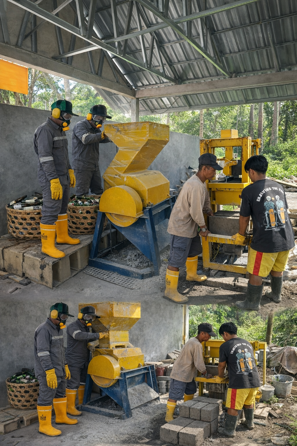 Awal 2025 menjadi momen penting. Mesin pemotong kaca akhirnya berfungsi, dan untuk pertama kalinya, tumpukan botol yang selama ini hanya menunggu waktu mulai berkurang—satu botol demi satu botol.