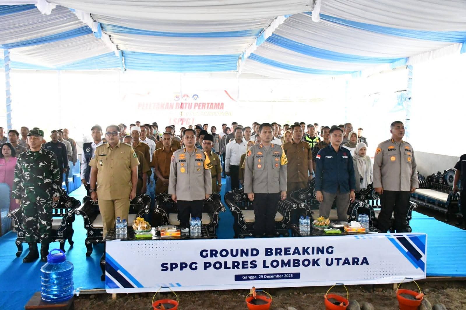 Peletakan batu pertama pembangunan SPPG yang berlangsung di halaman Polres KLU, Senin (29/12), turut dihadiri Wakil Bupati Lombok Utara Kusmalahadi Syamsuri, jajaran Polda NTB, serta unsur Forkopimda setempat.